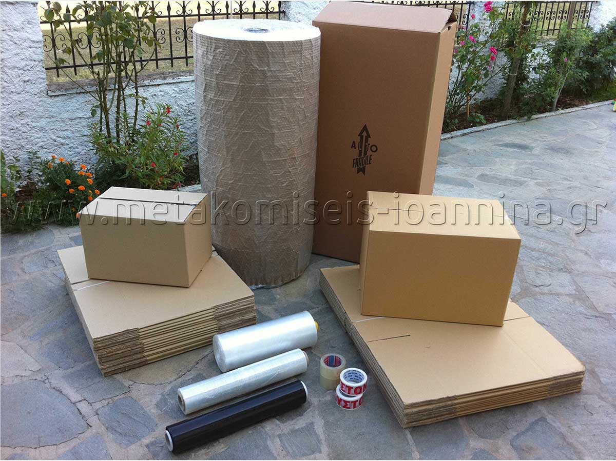 Εαν μας επιλέξετε για την μετακόμισή σας αλλά επιθυμείτε να συσκευάσετε μόνοι σας τα αντικείμενά σας, ζητήστε μας να σας προμηθεύσουμε εμείς τα υλικά συσκευασίας που χρειάζεστε, κερδίζοντας χρόνο και κόπο. Επιβάρυνεστε μόνο το κόστος τους. Η παράδοση στο χώρο σας είναι δωρεάν.